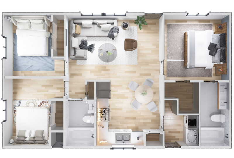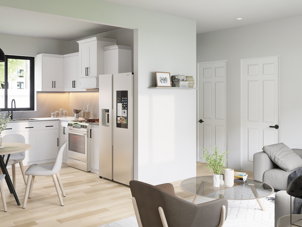 All of our homes feature open and highly functional floor plans to provide a seamless transition between the kitchen, dining and living areas. This promotes better flow and creates a more spacious feel.