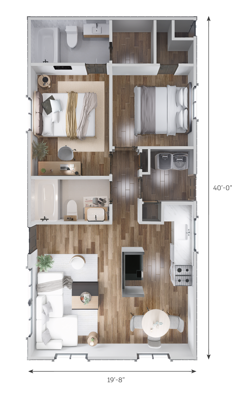 Building Dimensions: 40′-0″ L x 19′-8″ W
